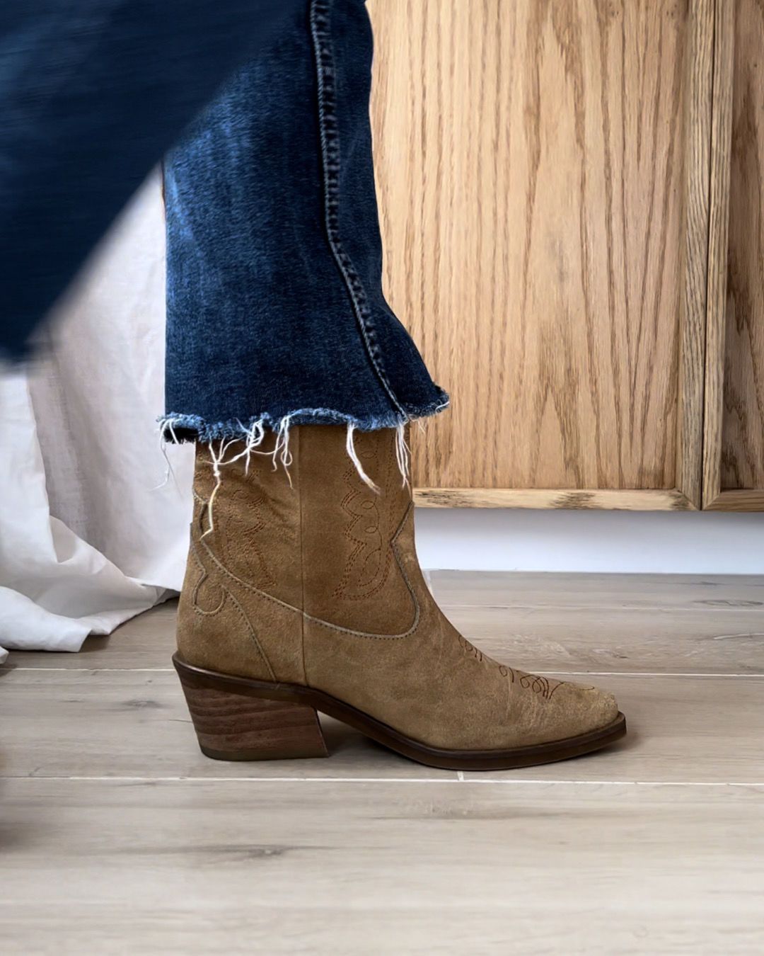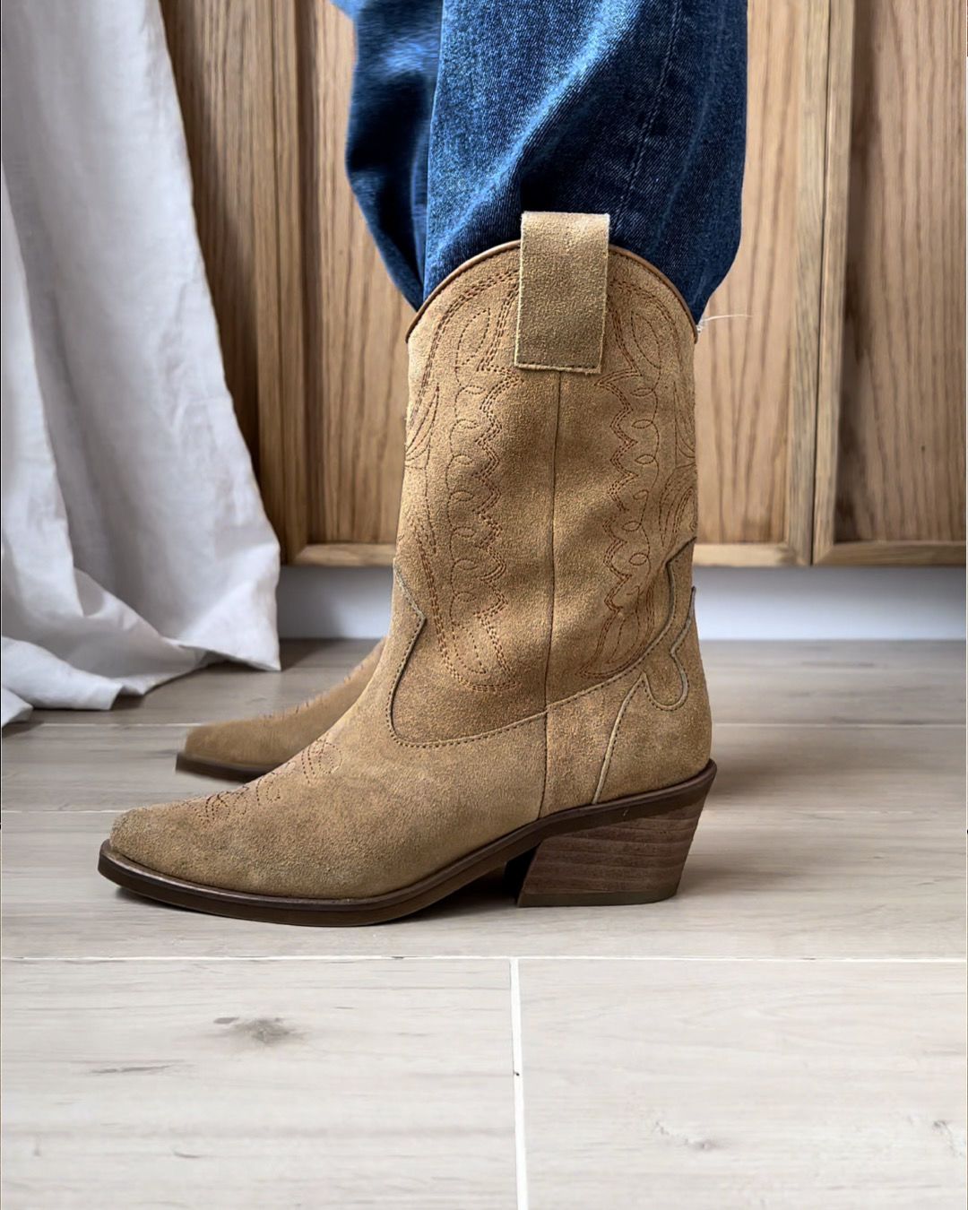 La recién llegada a nuestra querida Western Family. En gamuza bordada, caña media y taco de 5cm.